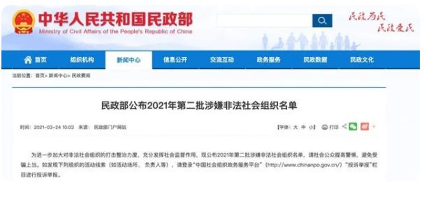 姘戞斂閮?鏈?4鏃ュ叕甯冧簡2021騫寸浜屾壒娑夊珜闈炴硶紺句細緇勭粐鍚嶅崟錛岃紺句細鍏紬鎻愰珮璀︽儠錛岄伩鍏嶅彈楠椾笂褰撱傚鍙戠幇涓嬪垪緇勭粐鐨勬椿鍔ㄧ嚎绱紙濡傛椿鍔ㄥ満鎵銆?璐熻矗浜虹瓑錛夛紝璇風(fēng)櫥褰曗滀腑鍥界ぞ浼氱粍緇囨斂鍔℃湇鍔″鉤鍙扳濓紝鈥滄姇璇変婦鎶モ濇爮鐩繘琛屾姇璇変婦鎶ャ?span class="bjh-br">