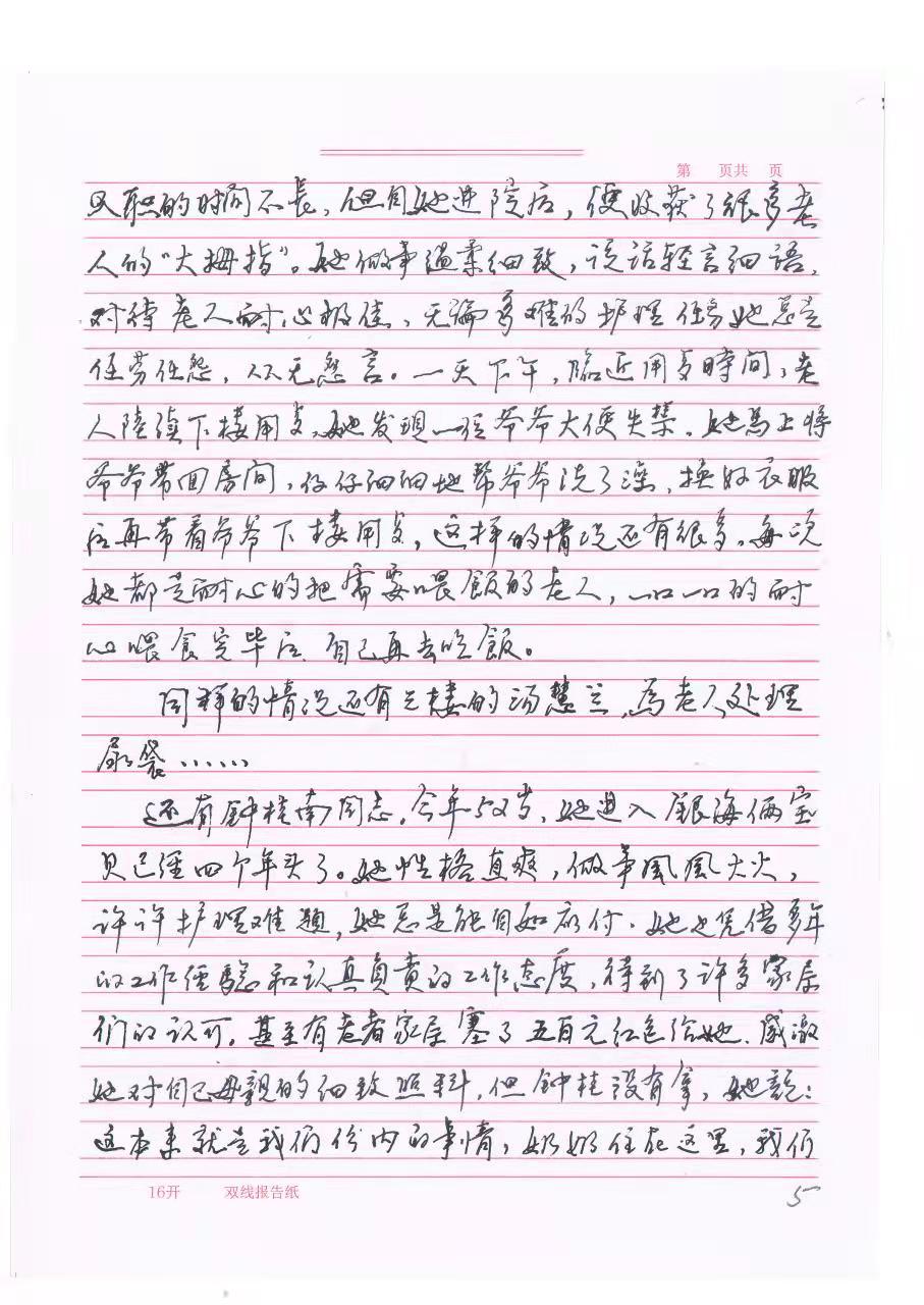 q有钟桂南同志,今年52岁,她进入银俩宝贝已经W四个年头了(jin)。她性格直爽做事风风火火Q许多让人头疼的护理NQ她总能自如应对Q她也凭借多q的工作l验和认真负责的工作态度Q得C(jin)许多家属的认可。甚x(chng)老者家属塞?/span>500元钱U包l她Q感Ȁ她对自己母亲的细致照料,但钟桂南没有拿,反而是义正a辞的拒绝?jin)。她_(d)(x)“这本来是我们分内的事情,奶奶住在我们q里Q我们就有义务就有责任要照顾好她Q?/span>