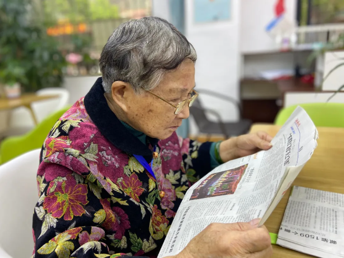 讀書看報(bào)、喝茶、擦面霜掐菜、鍛煉是這位住在窯灣長者照護(hù)者之家92歲老小孩的日常,人生的每一步景色,每一寸光陰都視她為寶,銀海倆寶貝伴她快樂每一天。