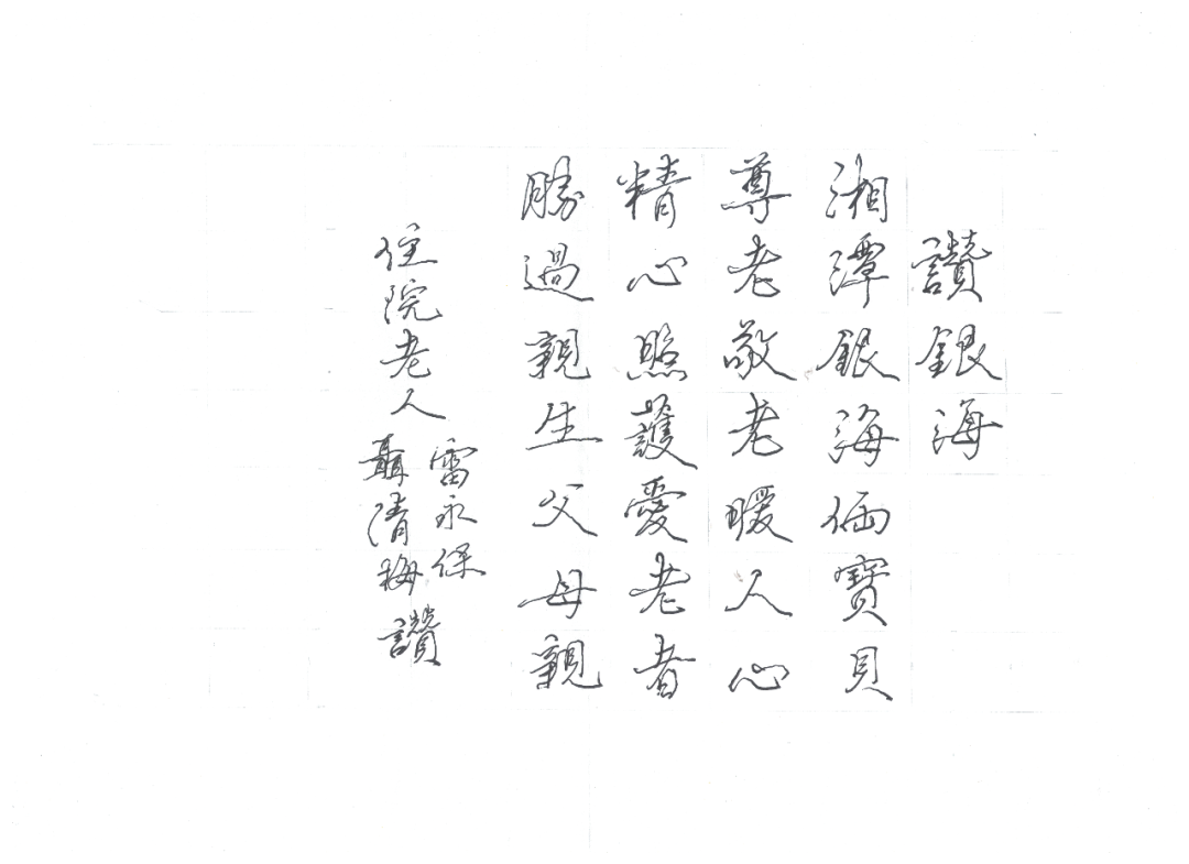 流露出雷爺爺對(duì)銀海倆寶貝養(yǎng)老服務(wù)的認(rèn)可和肯定。