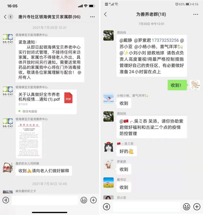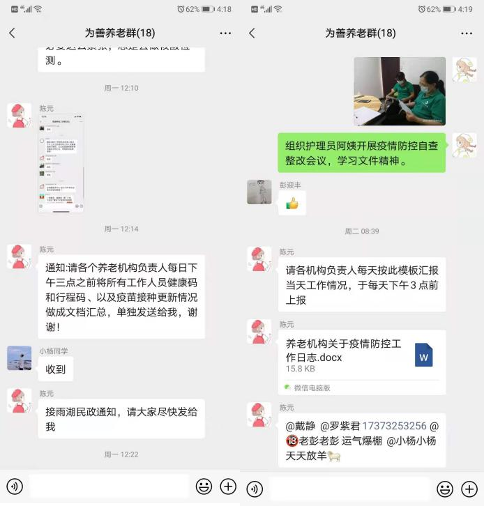 各長者之家實(shí)時(shí)根據(jù)各級政府要求,嚴(yán)格落實(shí)封閉式管理,線上通過家屬群、微信;線下通過張貼對外通知及政府文件,并做好老人及家屬的解釋工作,封院管理,所有工作人員停休待崗,24小時(shí)入駐機(jī)構(gòu),做好老人及自身防護(hù)工作。