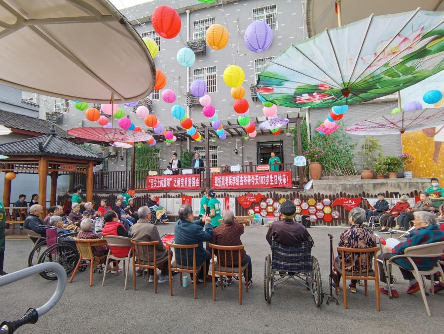 倆寶貝院內張燈結彩,喜迎佳節(jié)的到來,同時為李爺爺舉辦了一場熱熱鬧鬧的生日慶典,場面溫馨感人。二十余位長者圍坐一圈,手里晃動著不同的樂器,在活動師的帶領下為爺爺送上一首特別的生日歌。