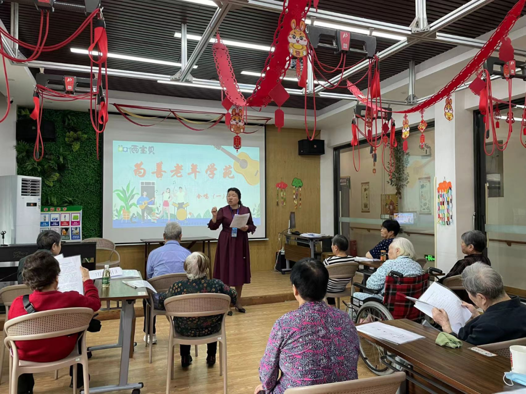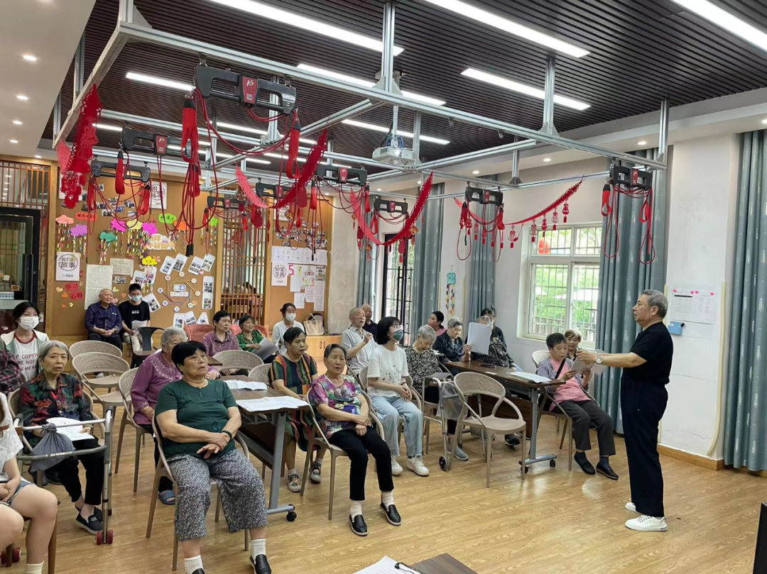 將“老年大學”開辦至養(yǎng)老機構內部,結合長者們的興趣愛好和學習需求,開設興趣課程,讓長者養(yǎng)老不孤單……銀海倆寶貝嘗試與科大木槿感恩支教團合作,推動老年人發(fā)展晚年興趣愛好,培養(yǎng)積極的生活態(tài)度,在“精神養(yǎng)老”模式上做出新的探索。