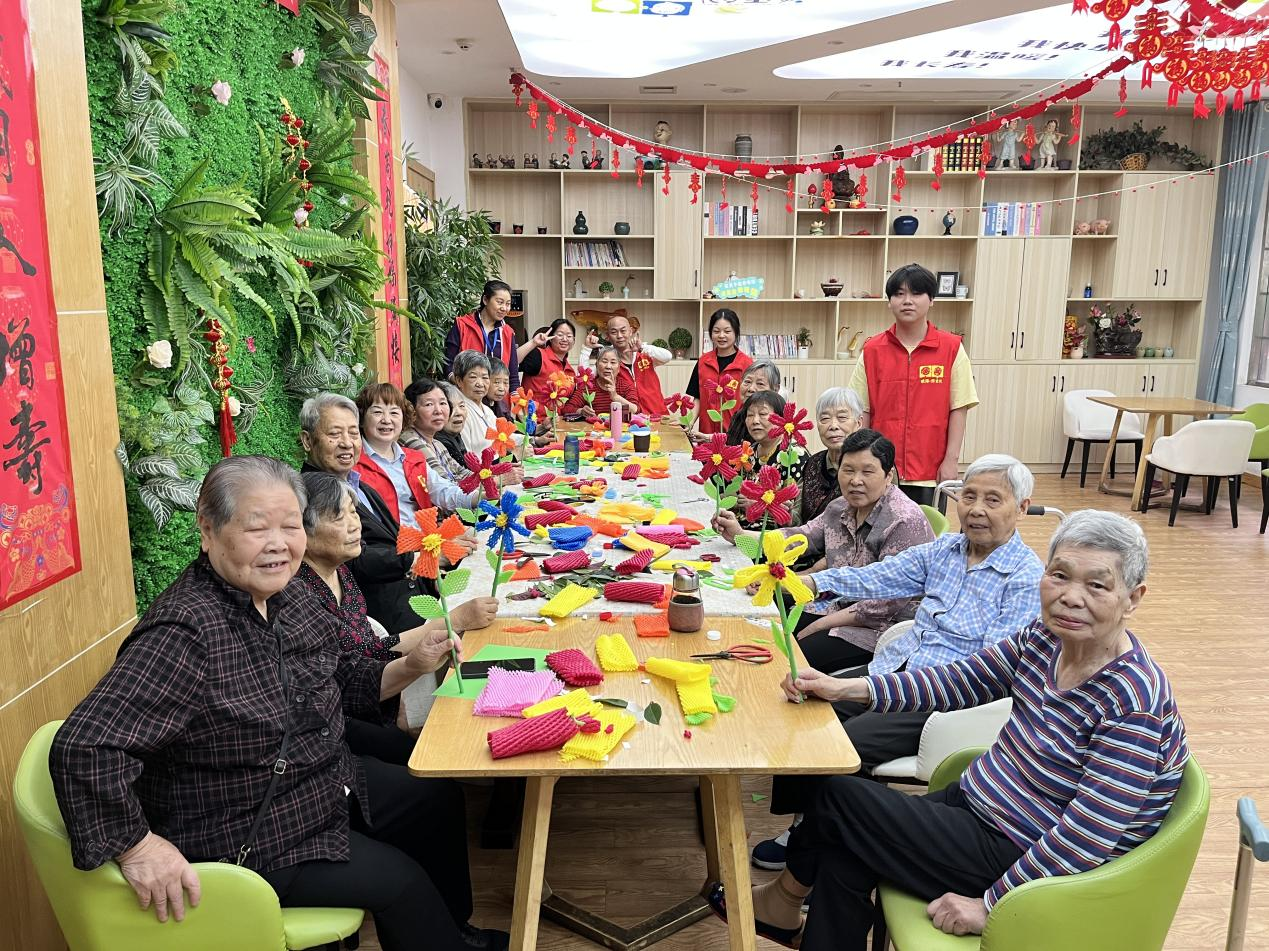 此次活動(dòng)不僅讓長(zhǎng)者們體驗(yàn)到了創(chuàng)作的樂趣,更讓他們?cè)趧?dòng)手制作的過程中感受到了花藝的魅力和自然的美好。更重要的是,這些作品全部由廢棄的泡沫網(wǎng)套和瓶蓋制成,實(shí)現(xiàn)了資源的再利用和環(huán)境的保護(hù)。