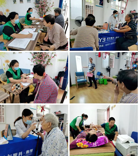 醫(yī)務(wù)人員一來到養(yǎng)老中心就忙了起來。他們?yōu)闋敔斈棠痰怯浶畔ⅰy量身高體重、量血壓、抽血、做心電圖、B超、視力檢測等檢查。