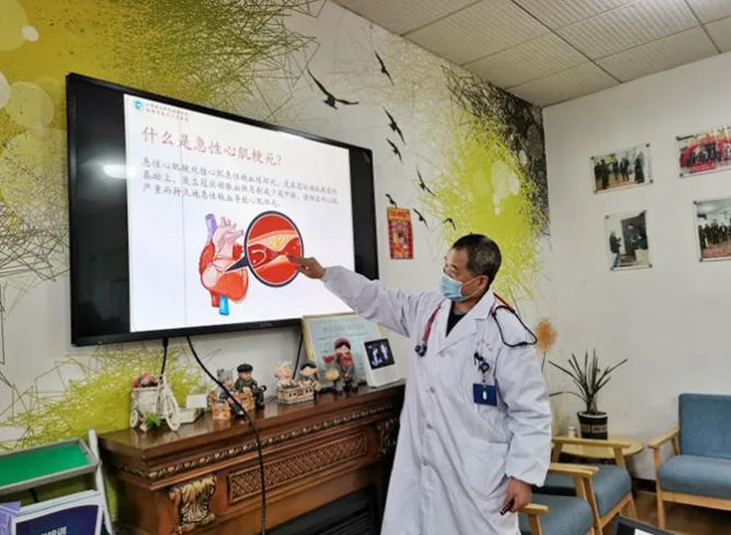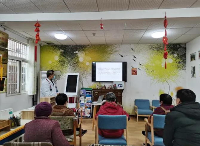 春節(jié)期間,銀海倆寶貝養(yǎng)老服務中心聯(lián)合市三醫(yī)院副主任醫(yī)師奉佳山來到紗廠街長者之家內(nèi),為工作人員普及心肌梗塞相關(guān)知識。